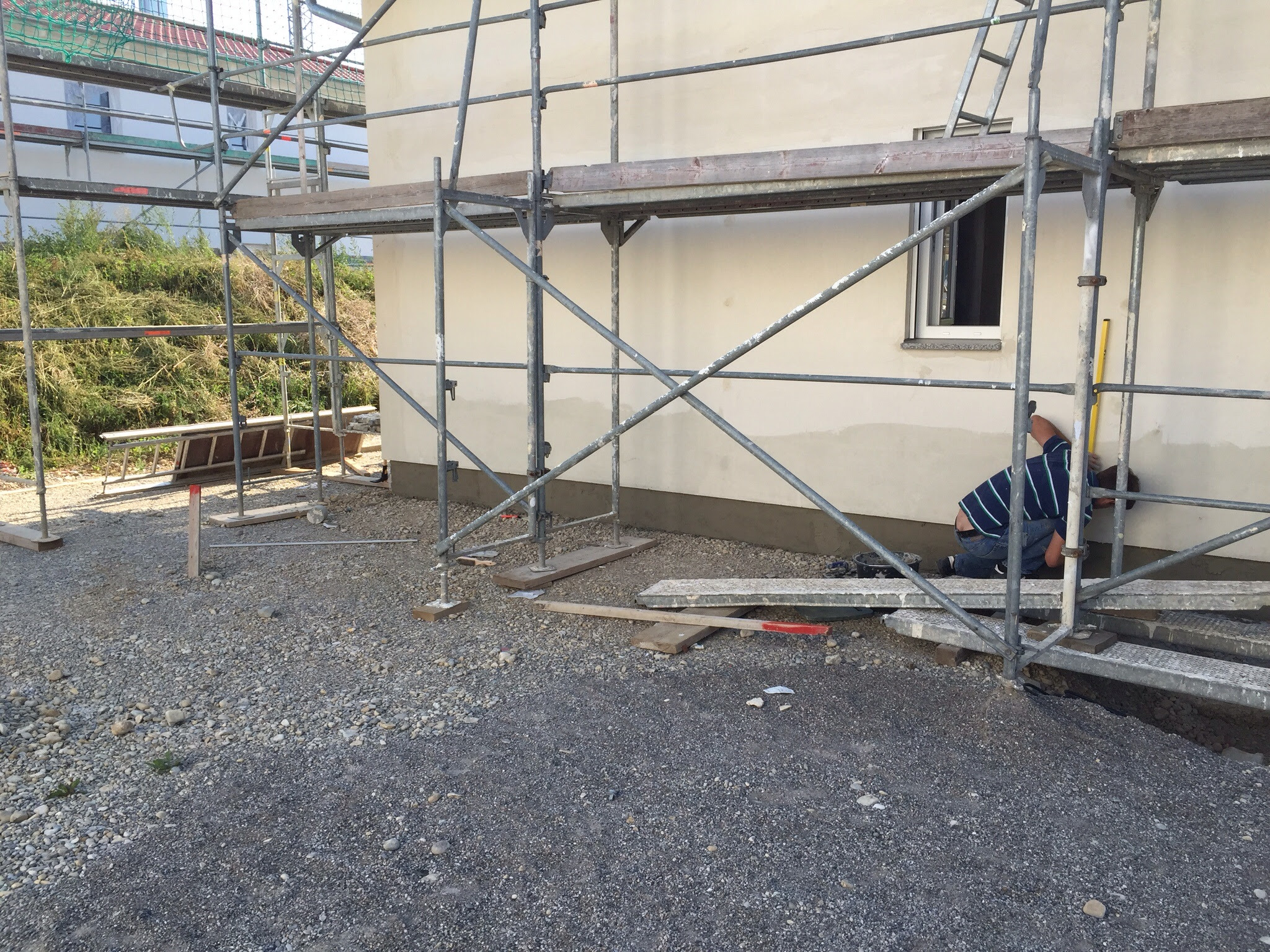 Dieses Wochenende stand unsere erste Eigenleistung auf dem Programm: der Sockelputz.
